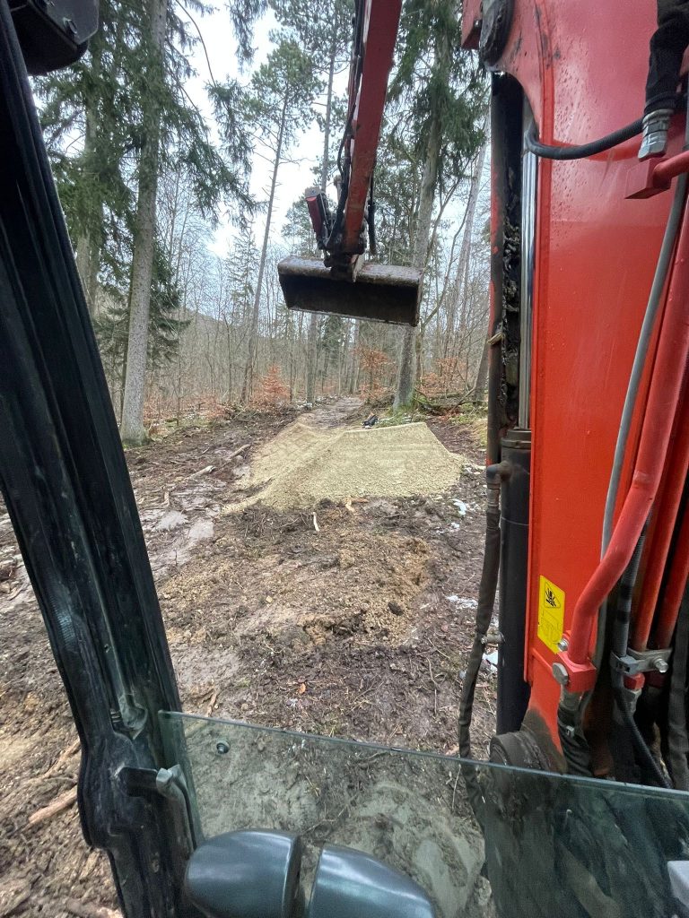 Auch heute war Florian wieder mit dem Bagger unterwegs und hat auf der DH ordentlich Material bewegt.