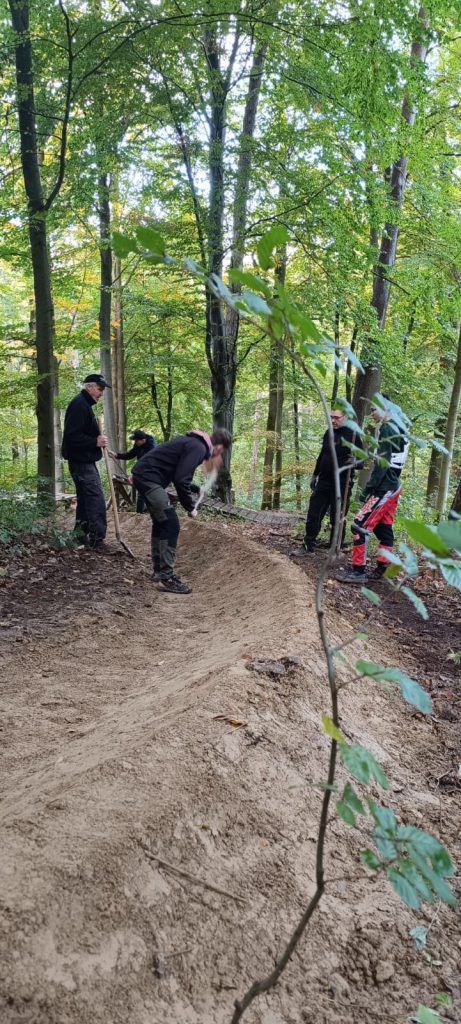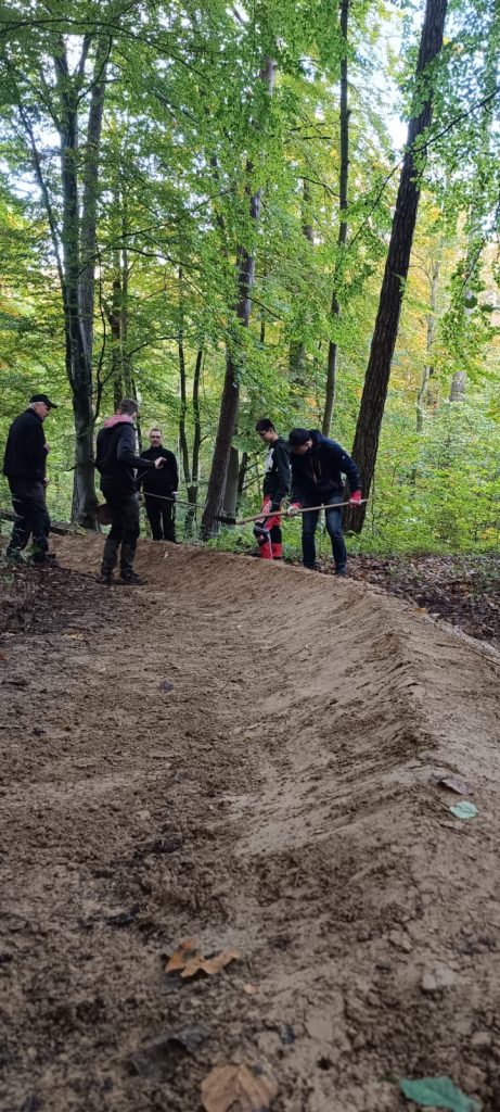 Heute haben wir die Trails vom Laub befreit und hinter den kleinen Drops auf der Enduro den Anlieger erneuert.