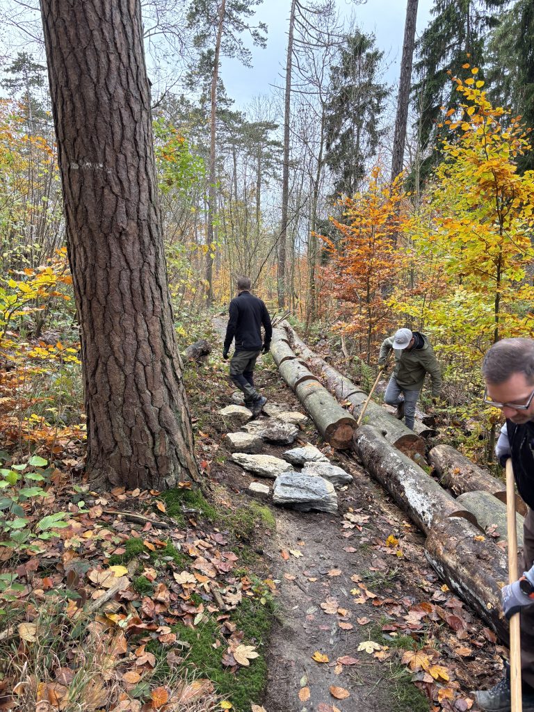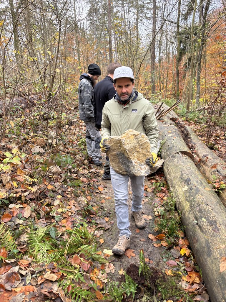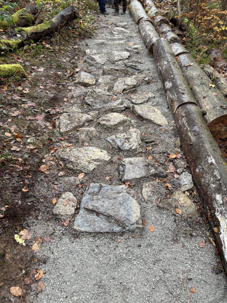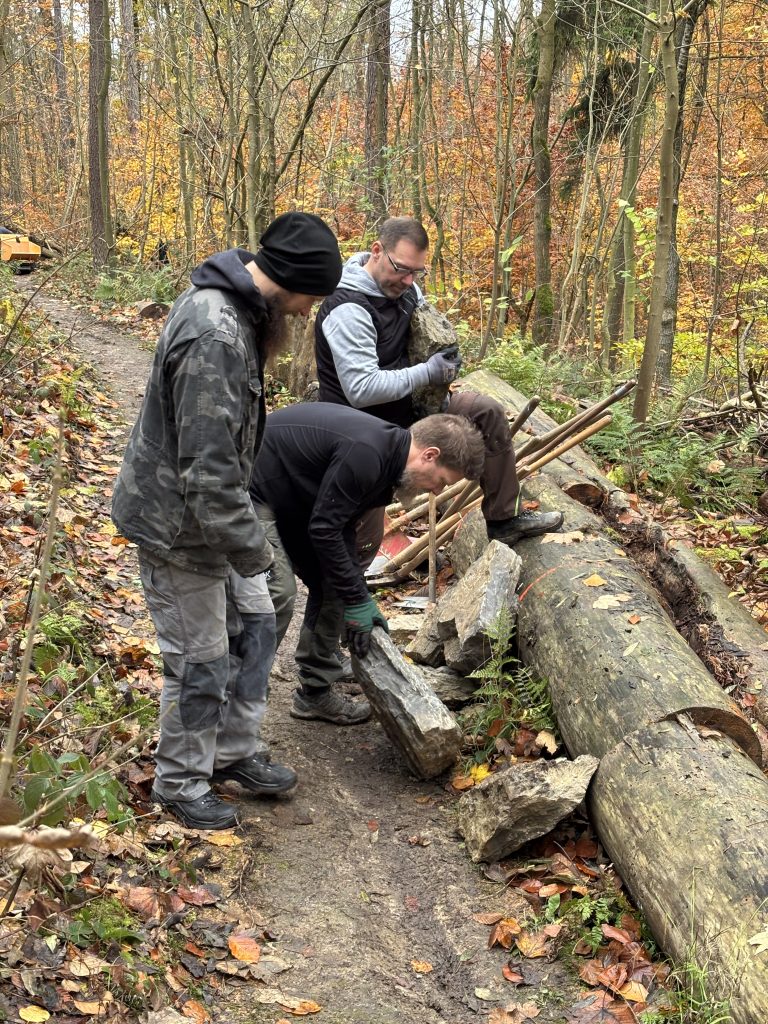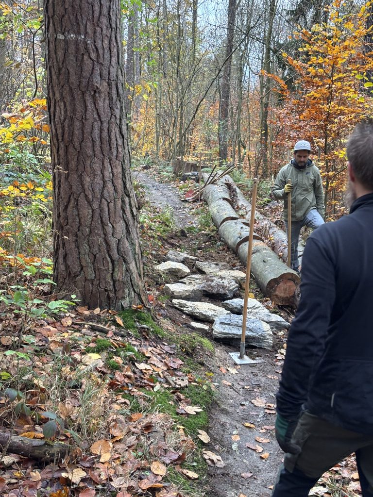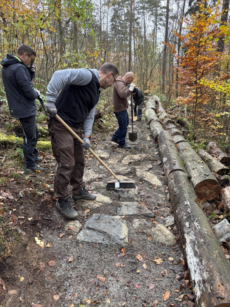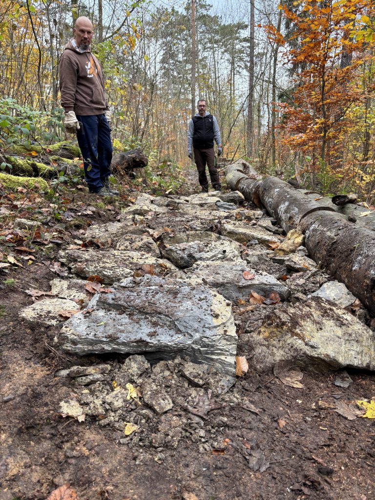 Das erste Stück Steinfeld auf der Enduro wurde angelegt. An der Stelle gab es nach Regen immer Probleme mit Matsch und großen Pfützen. An den kommenden Bautagen wird es noch ein Stück verlängert.
