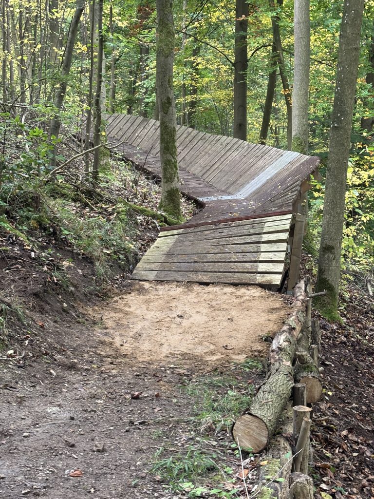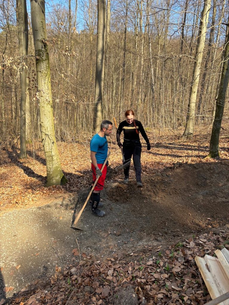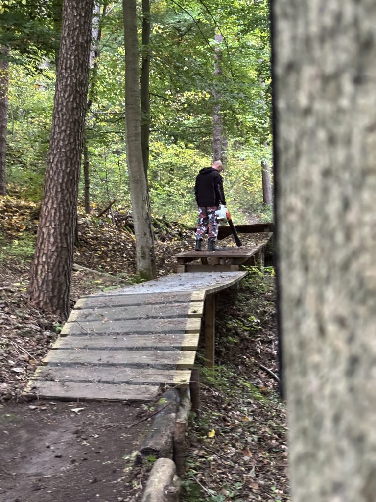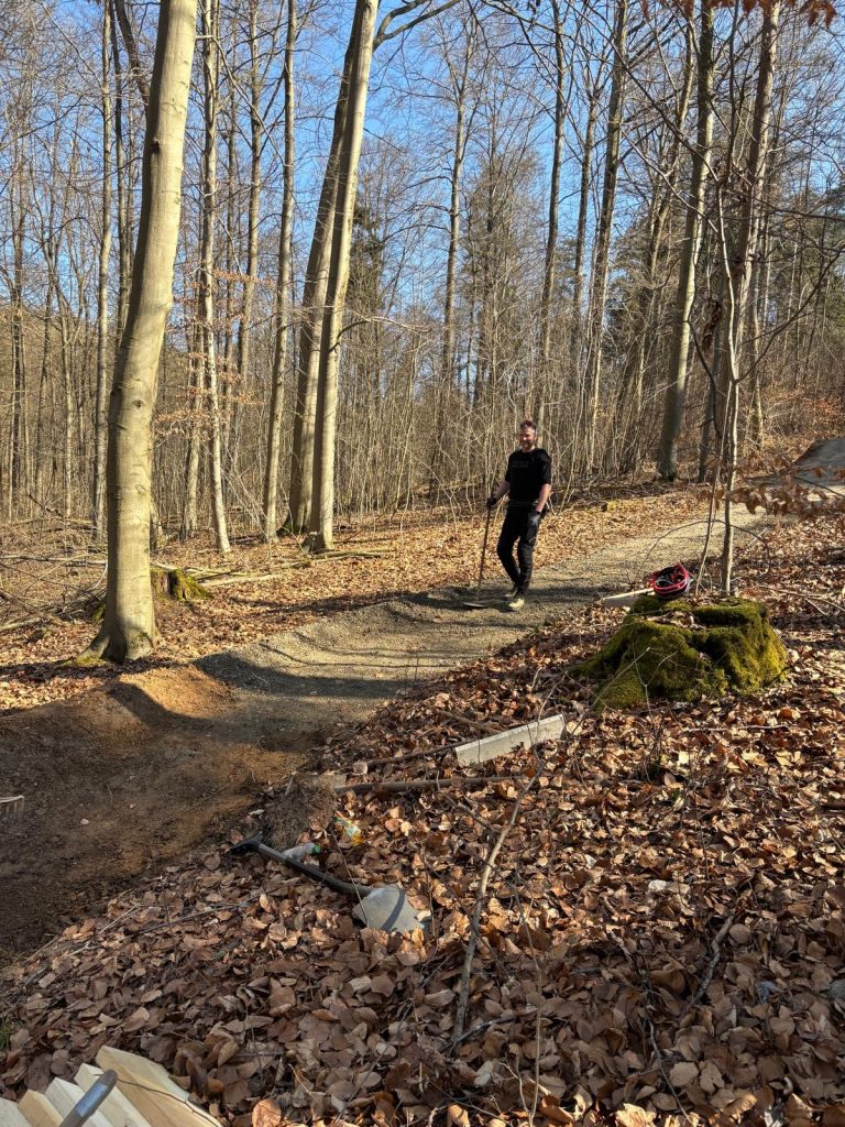 Der Herbst ist für die Trailbauer die Hochsaison – wenn die Temperaturen fallen und das Laub sich verfärbt, beginnt die arbeitsreichste Zeit des Jahres. Während andere ihr Bike winterfest machen und die Trails weniger frequentiert werden, schwingen wir Schaufeln und greifen zu Laubpustern, um unsere Strecken fit und sicher zu halten. Heute war wieder so ein produktiver Tag im Dienste der Trailriderz: Wir haben nicht nur die Trails vom Herbstlaub befreit, sondern auch Landungen hinter zwei der Holzelemente gebaut.